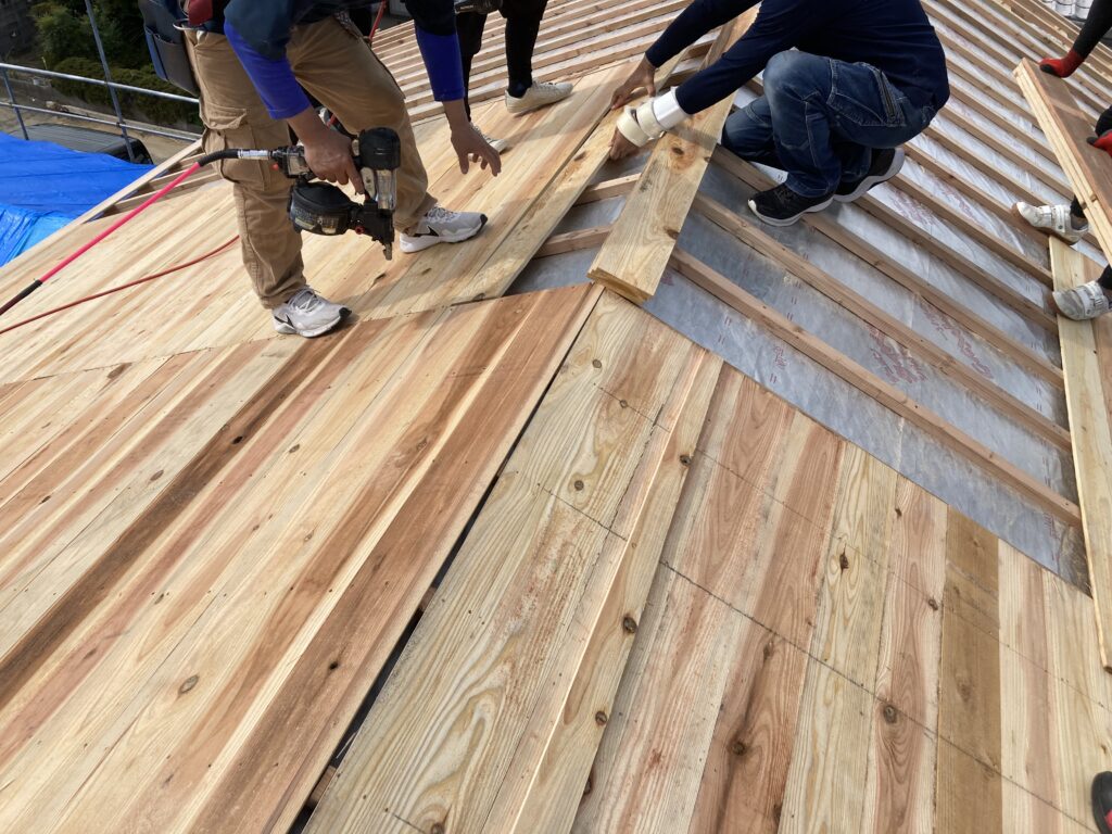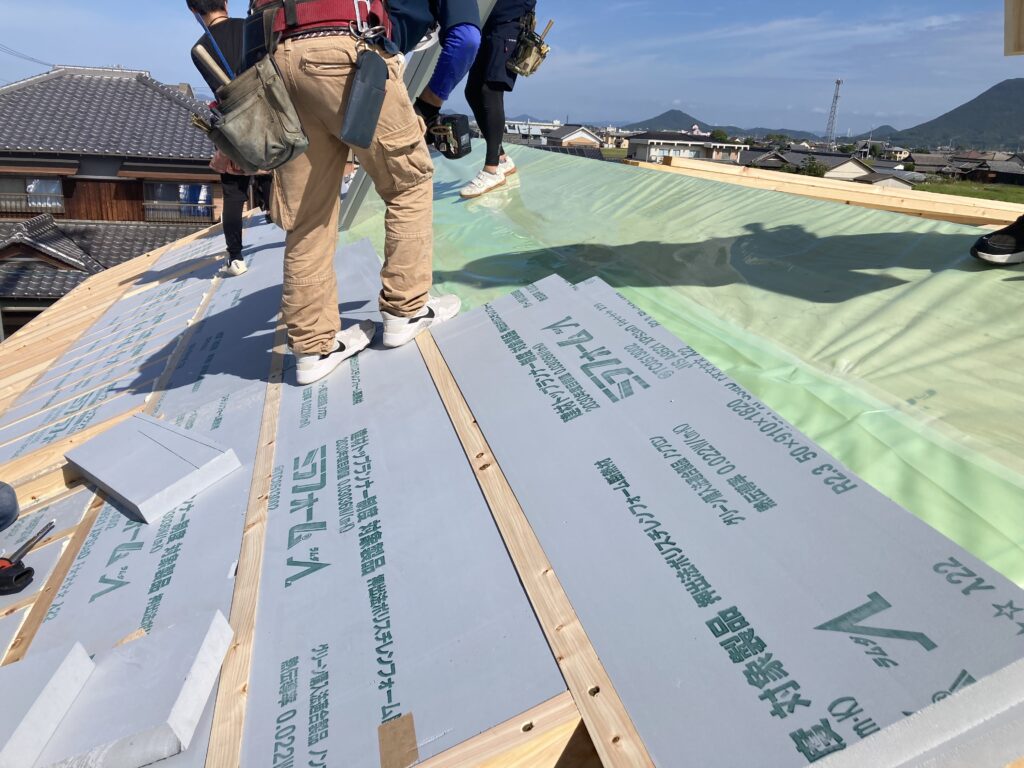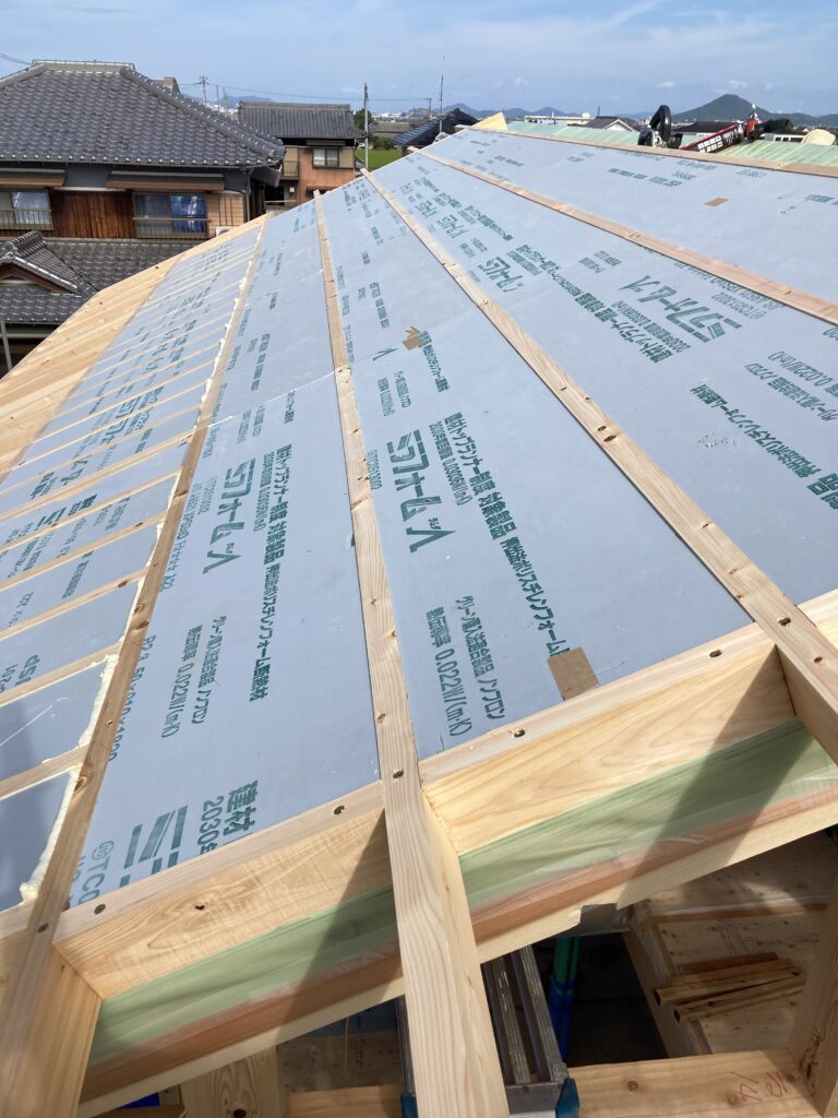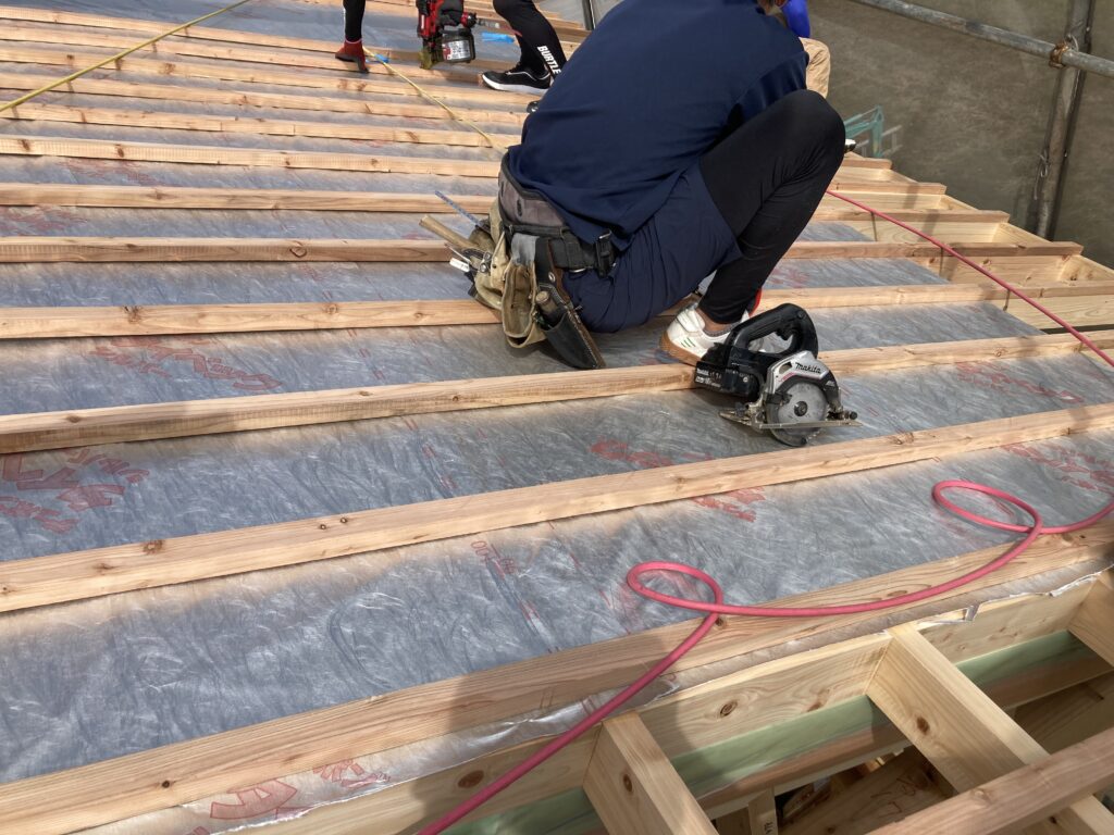 その上に、遮熱効果もある透湿防水シートを張ります。