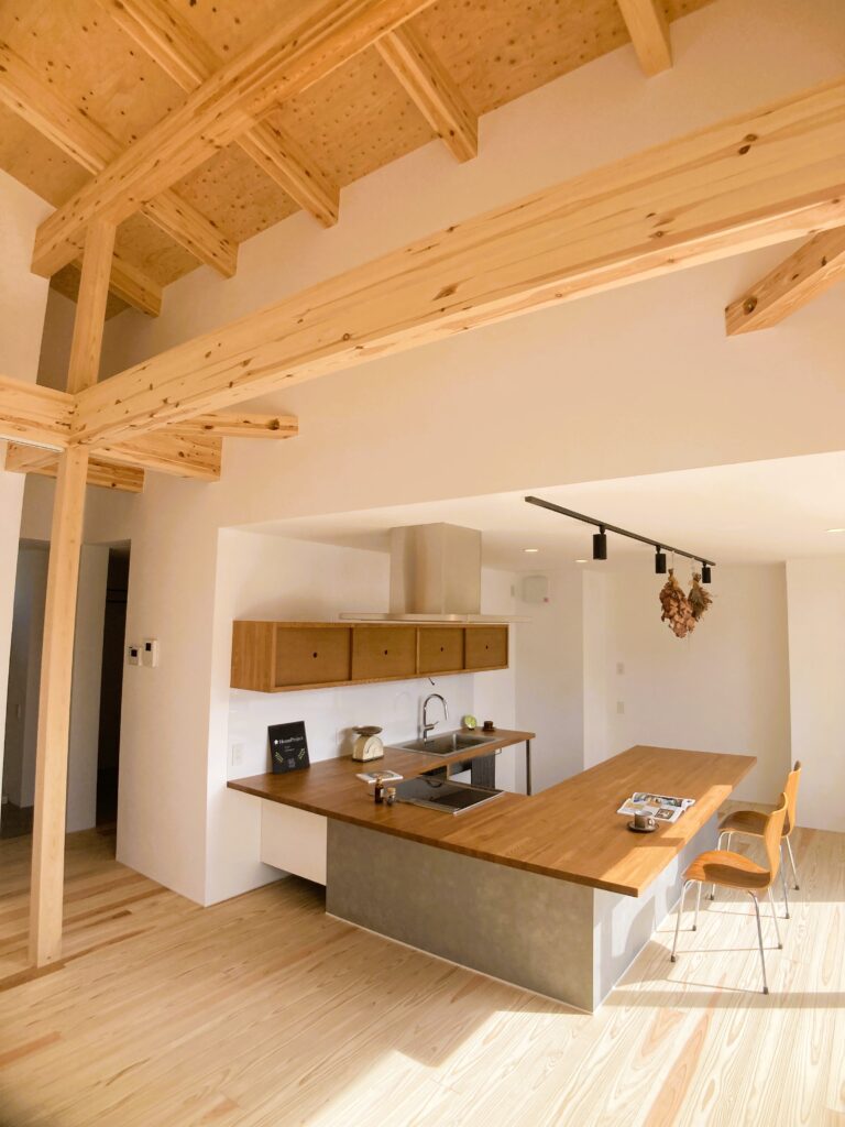 ★木の梁を見せた吹き抜け天井